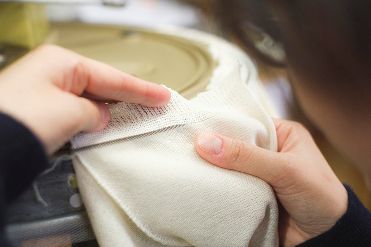We create each piece of cashmere knit one piece at a time, using the refined craftsmanship, tenacity of Tohoku people, and careful attention to detail.