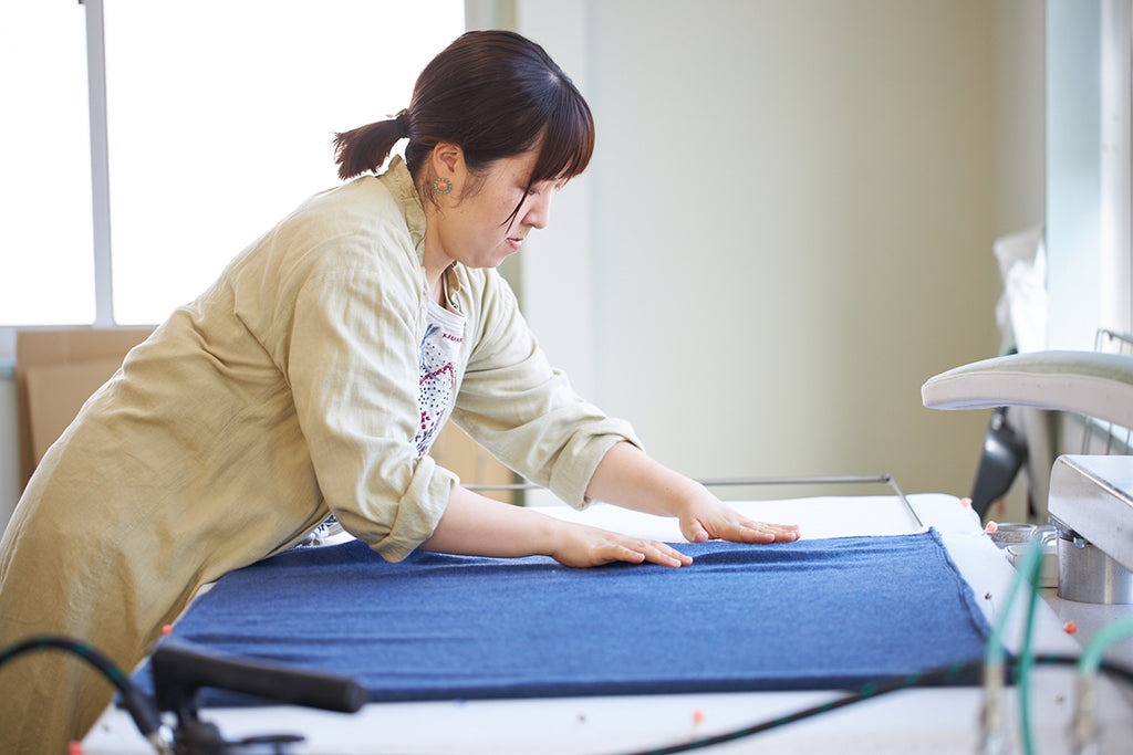 お客さまの手元にベストな状態でお届けするために、寸法などを確認しながらアイロンで丁寧に仕上げます。