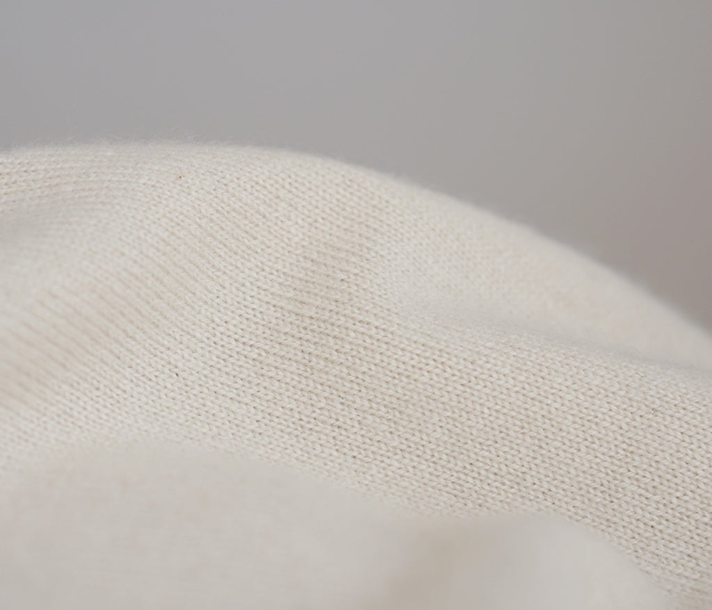 洗濯や着用を重ねるほど、ふんわりと滑らかに育っていく、UTOの「育てるカシミヤニット」です。