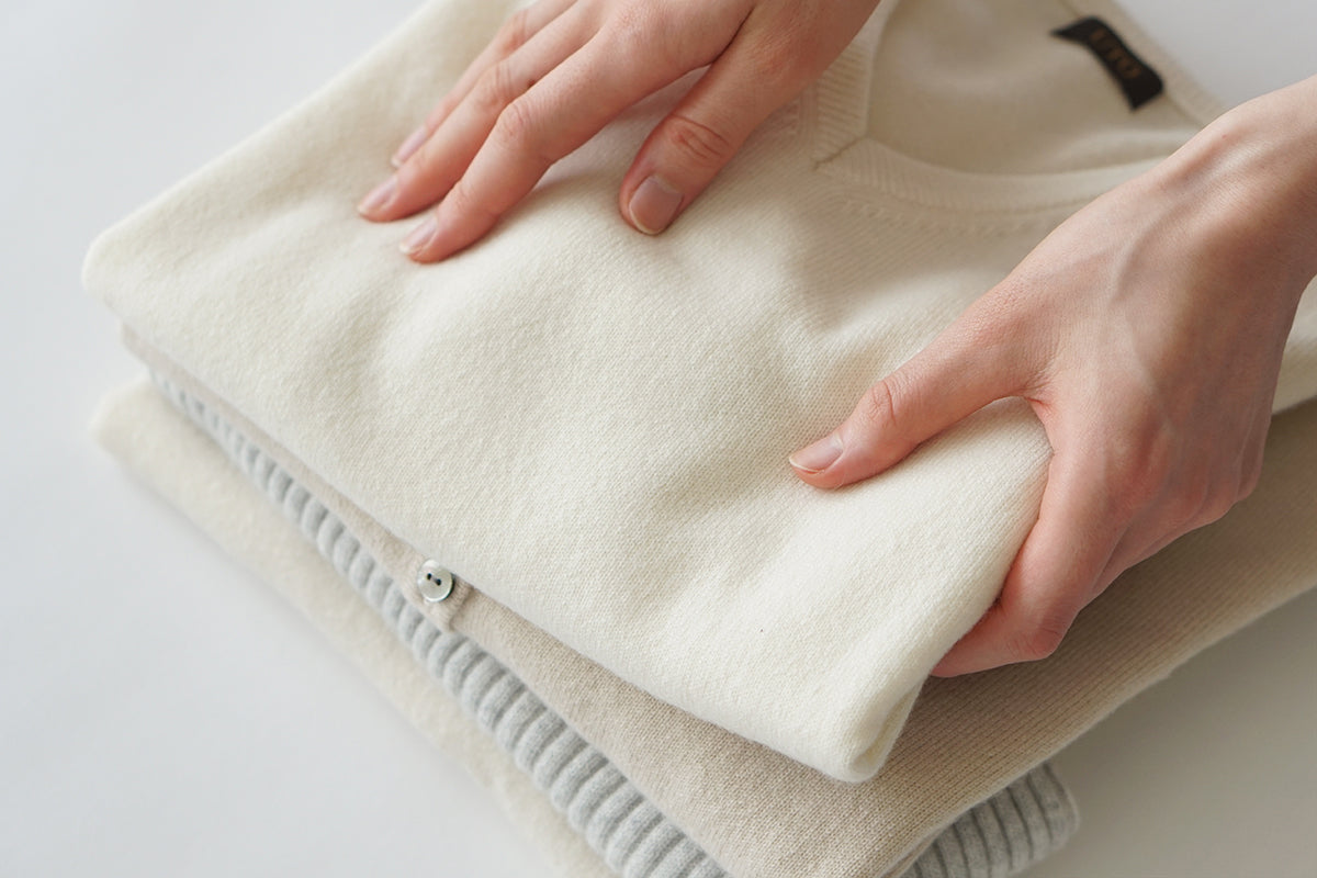 「洗っても縮まない」ように、長年の研究と技術を込めて作る、自宅で簡単に「安心して洗えるカシミヤニット」。
