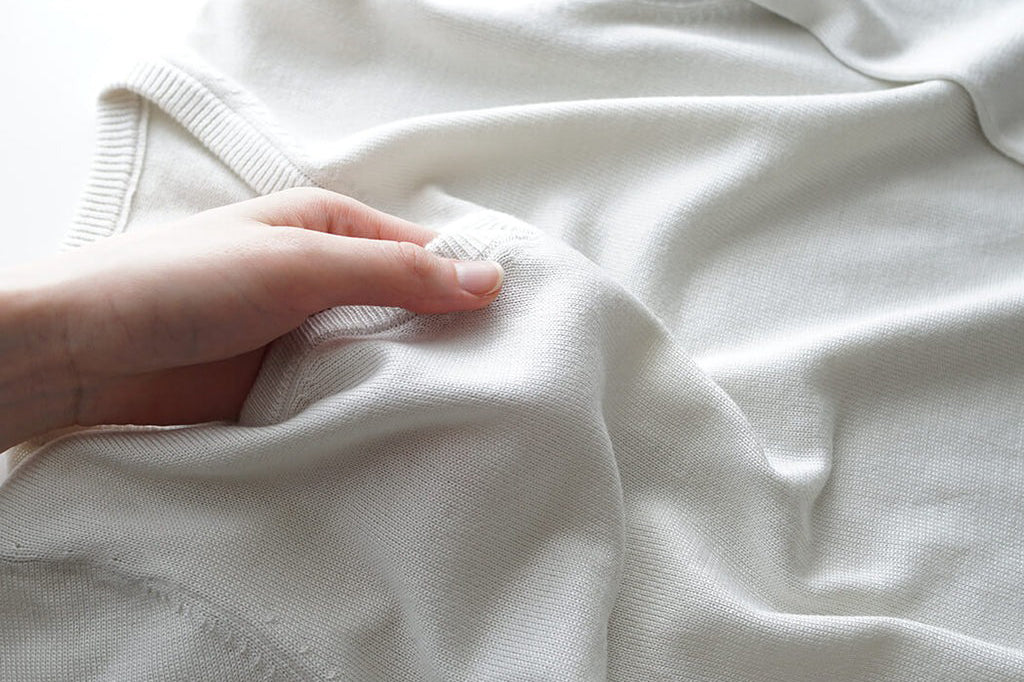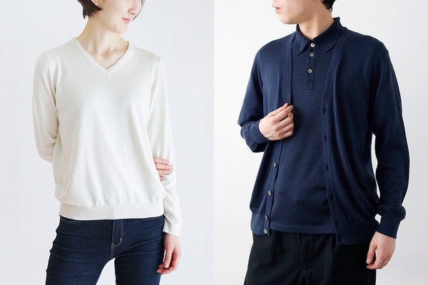 一度着たら虜になるしっとりと素肌に優しい肌あたり。絹紡糸特有の柔らかさとカシミヤ作りで培った風合い出しを活かし、“何度も着たくなるような肌触り”にこだわり編みました。
