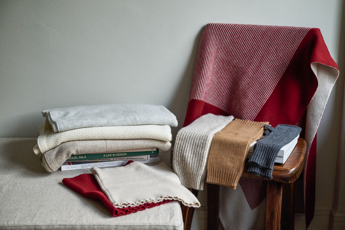 "最高等級のカシミヤ原毛"を日本で紡績した、日本製のカシミヤ糸。